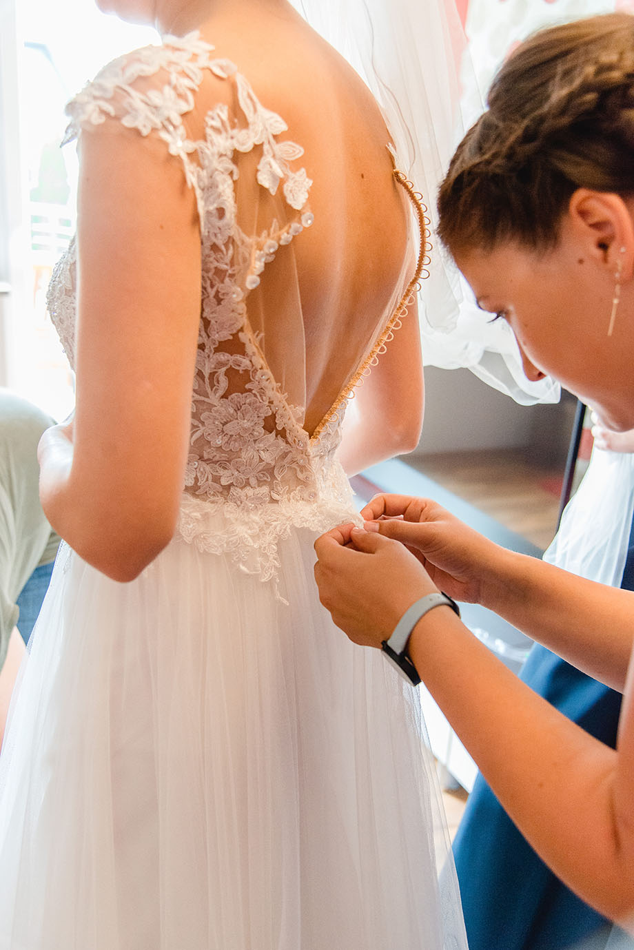 Der Tag begann mit dem Getting Ready und einen kleinen Drama am Morgen, denn nach zahlreichen Tanzproben riss die Naht am Reifrock auf und der eigentliche Reif rutschte raus. Rettend kam die Mama der Trauzeugin, die mit Nadel und Faden anrückte und dem Drama ein Ende bereitete. Ein Hoch auf die Mamas 🙂